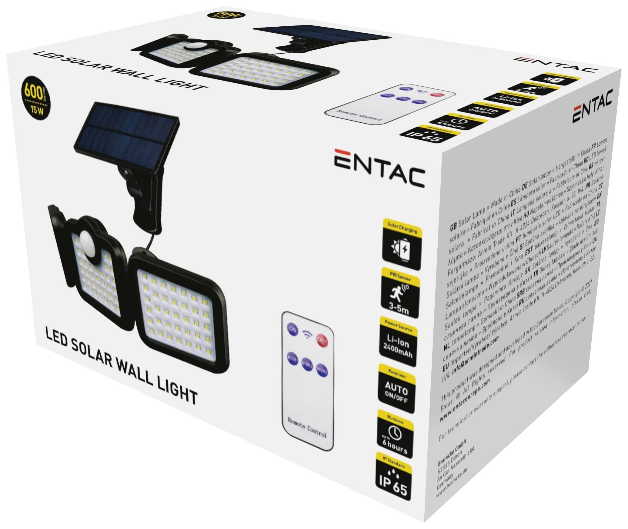 ENTAC ESL3H-SMD-RS LED zidna svjetiljka s detektorom pokreta 15 W