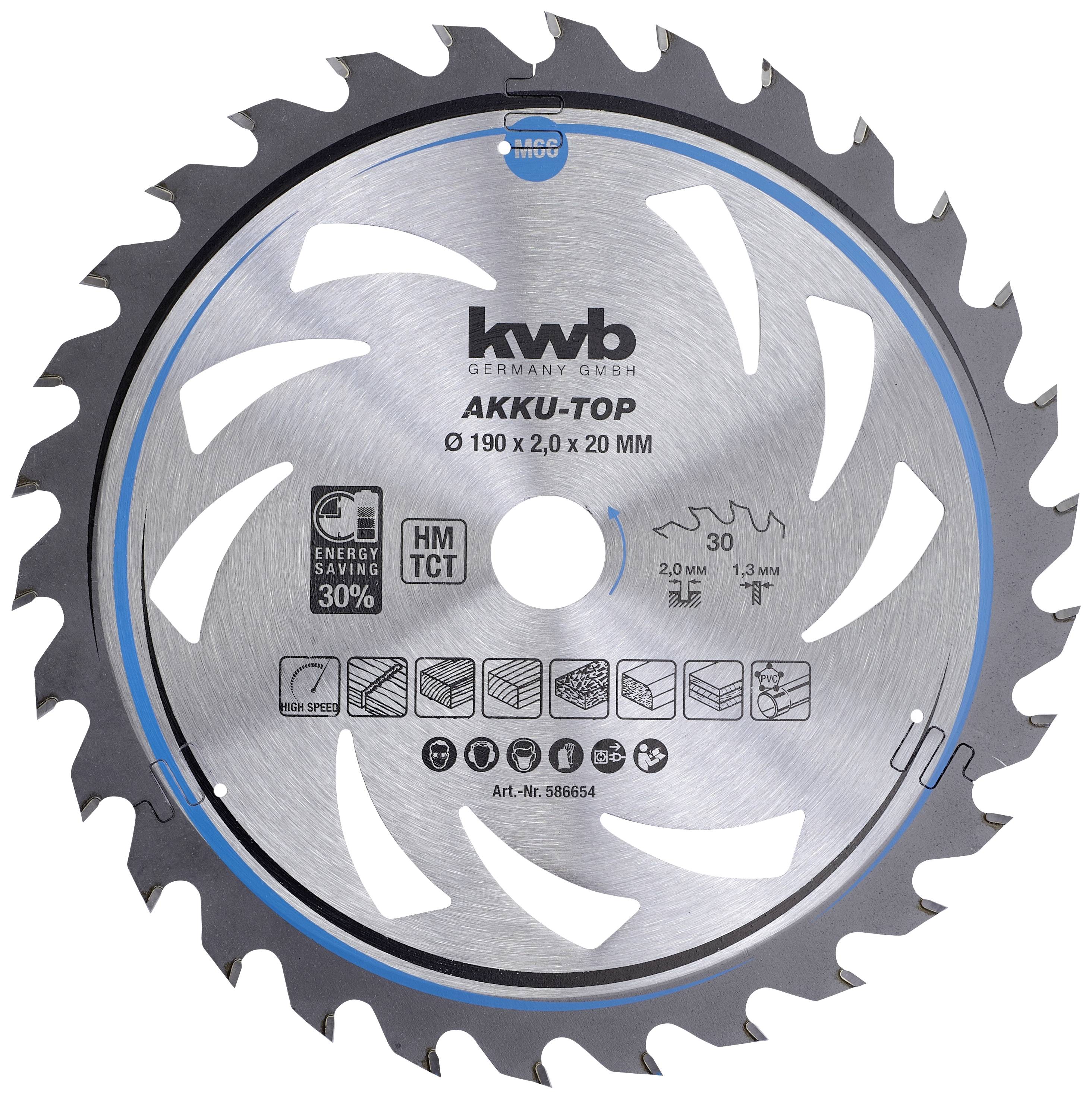 kwb 586654 list kružne pile od tvrdog metala 190 x 20 x 1.3 mm Broj zubaca (po inču): 30 1 St.